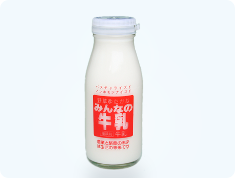 「みんなの牛乳」は消費者と組合、そして生産者が力をあわせて作り上げた搾りたての生乳に近い本物の味のする牛乳です。