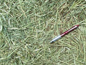 イネ科の牧草で、種子を採取するために栽培されています、採取後の茎(ストロー)の部分を乾燥し、圧縮梱包したものです。一般にストロー類の牧草は、青刈乾牧草と比較して色合いが脱色しており、また繊維分が多いが栄養価は低い。