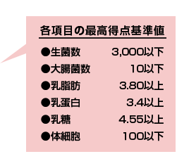 組合では昭和58年より低温殺菌牛乳に取り組んできた為、一般の基準値をはるかに超えた独自基準での生乳作りが生産者に根付いています。