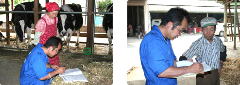 そして、各酪農家を訪問しての飼育方法や飼料、衛生環境等の指導を行い、組合と生産者が一丸となってより質の高い生乳作りに努めています。