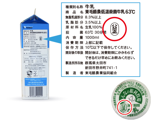 牛乳類の容器に表示されている『公正マーク』がその基準をクリアした証になります。公正マークは新しい容器を作るときや表示を変えるとき、事前に表示案の点検と指導がなされます。また、表示した成分や内容量については年3回の認定検査機関の検査報告がされます。