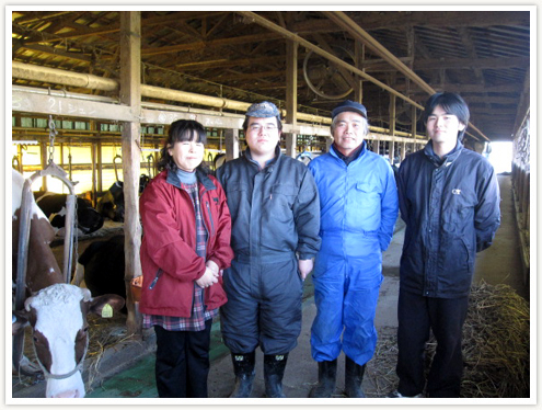 家族構成は2男1女に祖母の6人家族です。現在は二人の息子さんが牛舎に入り手伝っています。長男の健志氏はDMSシステム(酪農家経営管理システム)を取り入れ経営面にも意欲的に参加しています。